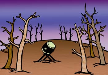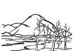 ![]() 打吹山の近景 オープニング、2枚目背景 画です。この絵にあの可 愛いらしいワリバシ人形が フレームインしてきます。 |