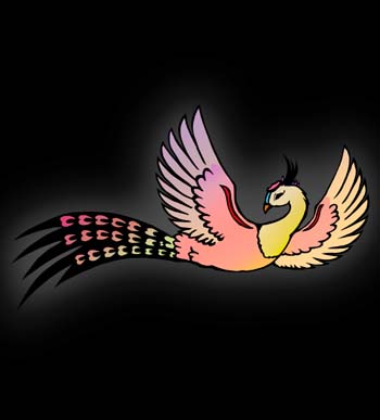 ![]() 天女鳥 天人鳥との違いがわかりますか? 柔らかな暖色系の色を使って天女 の優しさ、気高さを表現しています。 |