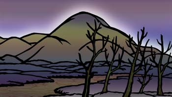 ![]() 打吹山の遠景 オープニング、一番最初に 登場する大切な背景画です。 |