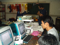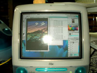 製作すること。切り絵原画を i-Macに取り込み、それに彩色を施して透明セル