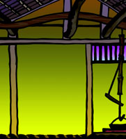 工房のもうひとつの仕事は、三つの大きなスクリーンに映し出される背景画を