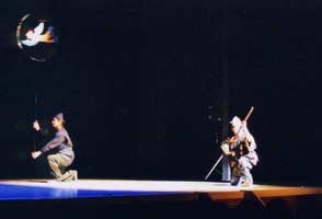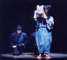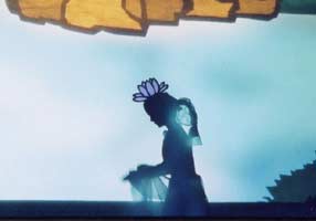 そして天人も地上に舞い降りる。一年に一度の天女との再会。しかし…。 そう、又四郎はなんと、天女の羽衣を盗んで帰っていったのだった。羽衣を取り戻すべく呼び寄せられる、天界のしもべ、梟と銀狐。 |