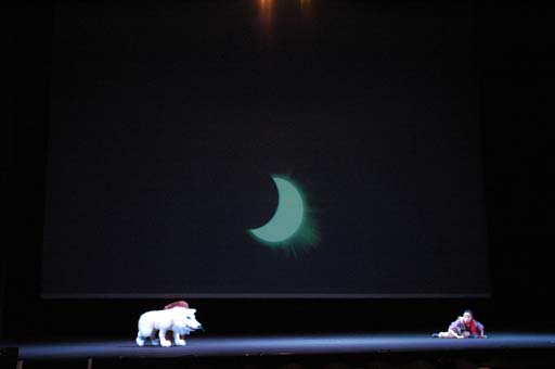 「クラ!クラぁ〜〜〜!」後を追おうとするレンを白狼が必死に引きとめます。